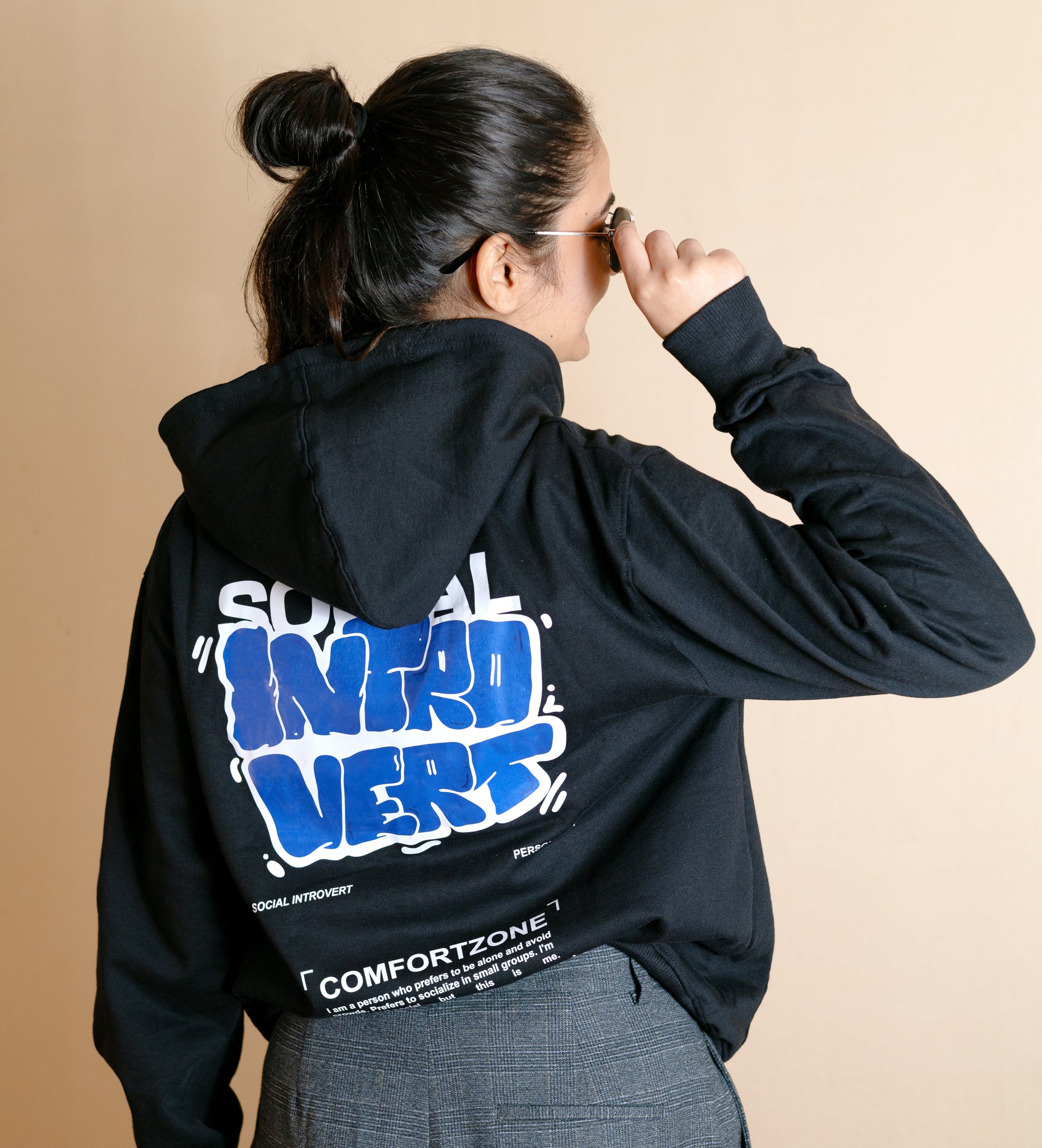 - Our 5’6ft tall female model is wearing a Size S for oversized fit.